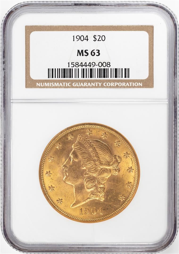 One 1904 $20 Liberty Head Double Eagle Gold Coin NGC MS63. NGC Certified.