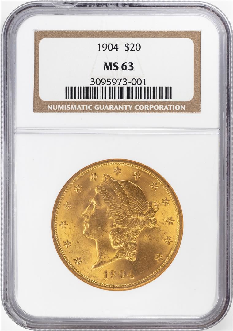 One 1904 $20 Liberty Head Double Eagle Gold Coin NGC MS63. NGC Certified.