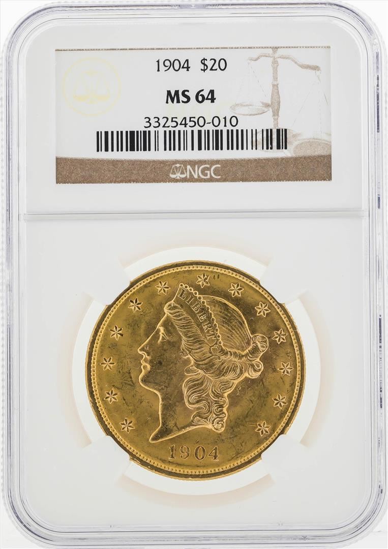 One 1904 $20 Liberty Head Double Eagle Gold Coin NGC MS64. NGC Certified.