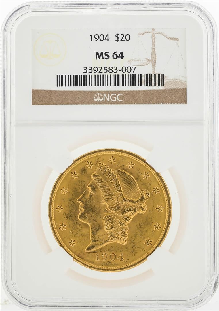 One 1904 $20 Liberty Head Double Eagle Gold Coin NGC MS64. NGC Certified.