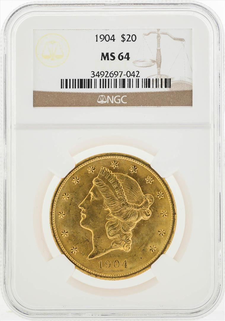 One 1904 $20 Liberty Head Double Eagle Gold Coin NGC MS64. NGC Certified.