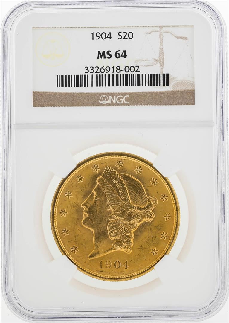 One 1904 $20 Liberty Head Double Eagle Gold Coin NGC MS64. NGC Certified.