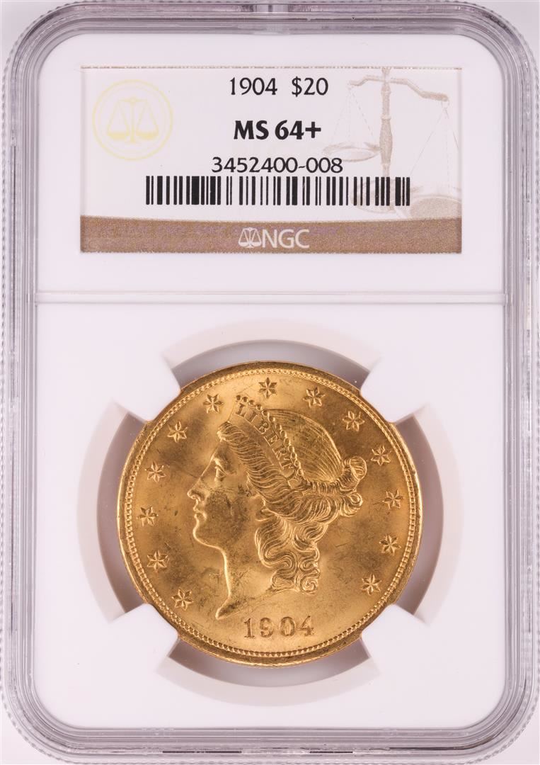 One 1904 $20 Liberty Head Double Eagle Gold Coin NGC MS64+. NGC Certified.