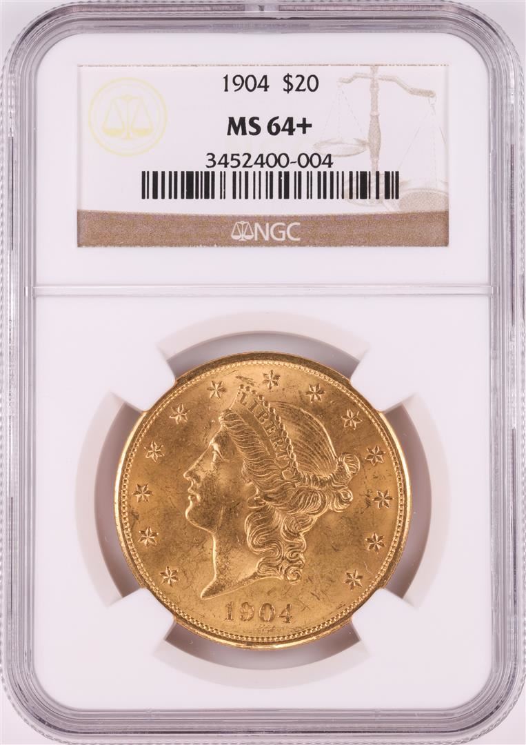 One 1904 $20 Liberty Head Double Eagle Gold Coin NGC MS64+. NGC Certified.