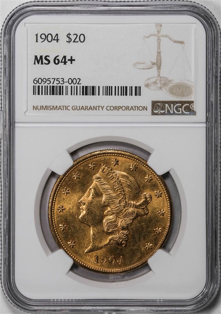One 1904 $20 Liberty Head Double Eagle Gold Coin NGC MS64+.