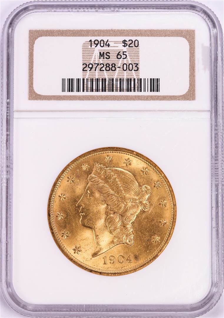 One 1904 $20 Liberty Head Double Eagle Gold Coin NGC MS65. NGC Certified.