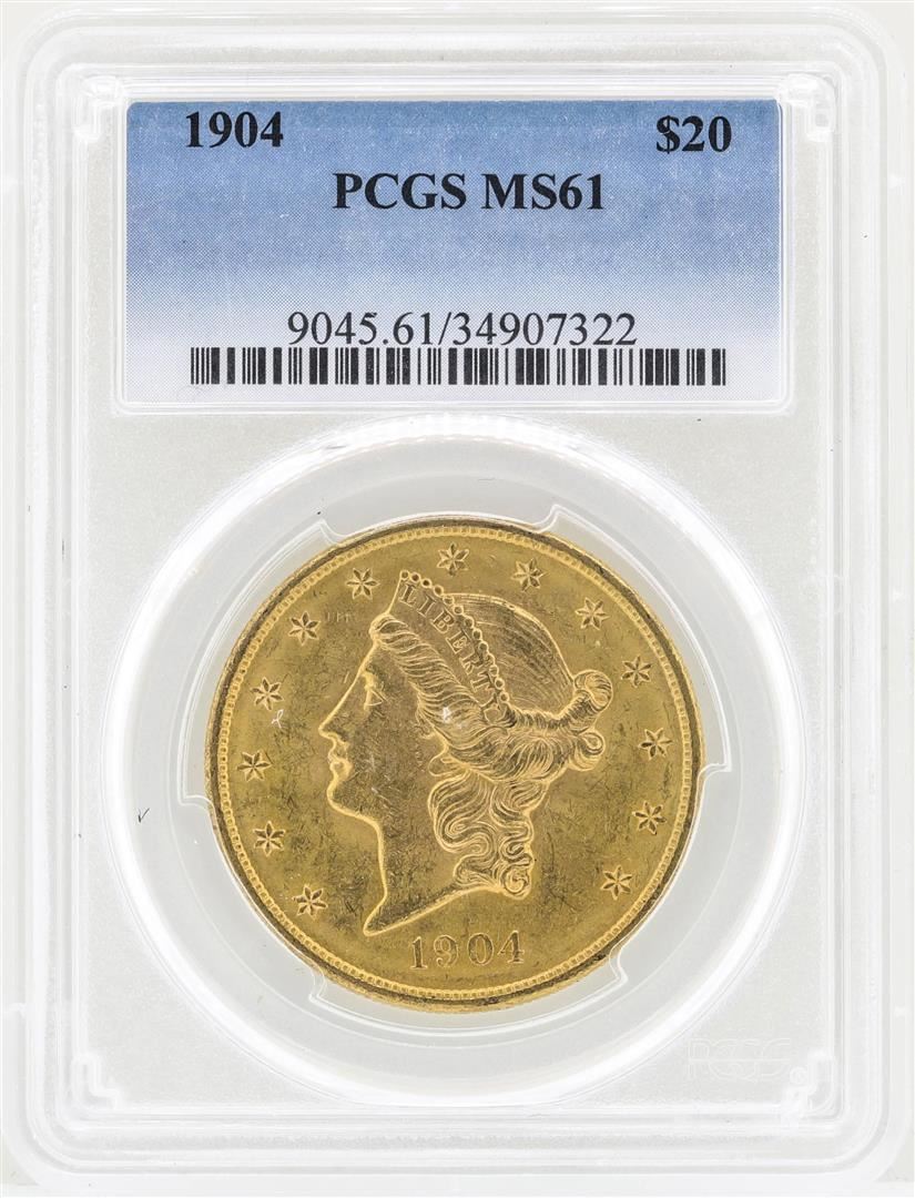 One 1904 $20 Liberty Head Double Eagle Gold Coin PCGS MS61. PCGS Graded.