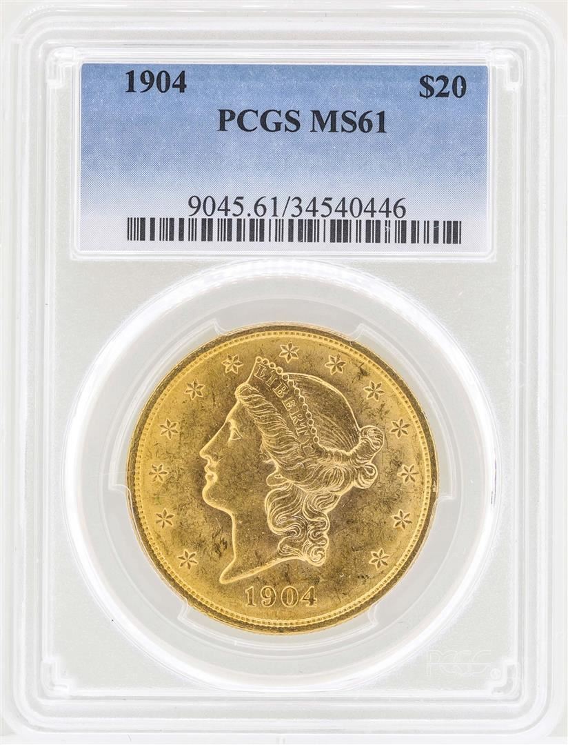One 1904 $20 Liberty Head Double Eagle Gold Coin PCGS MS61. PCGS Graded.