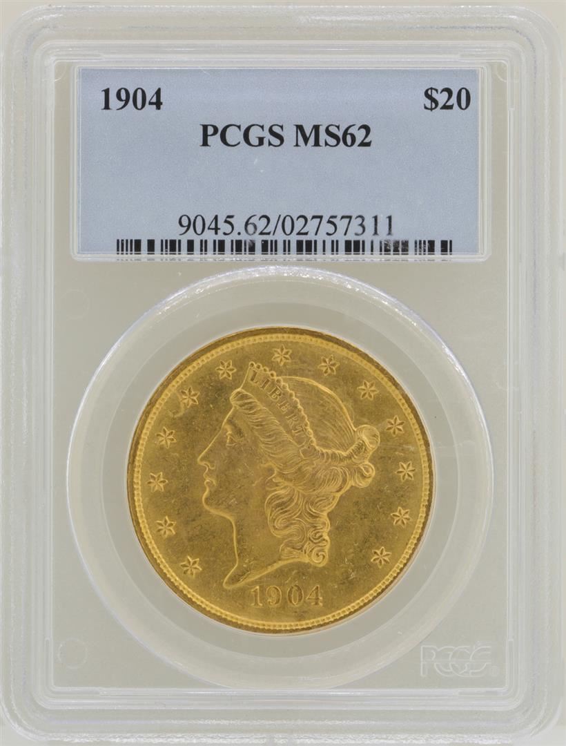 One 1904 $20 Liberty Head Double Eagle Gold Coin PCGS MS62. PCGS Graded.
