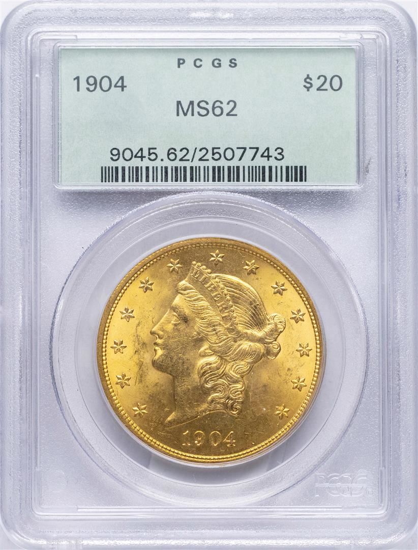 One 1904 $20 Liberty Head Double Eagle Gold Coin PCGS MS62. PCGS Graded.