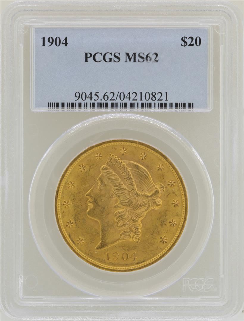 One 1904 $20 Liberty Head Double Eagle Gold Coin PCGS MS62. PCGS Graded.