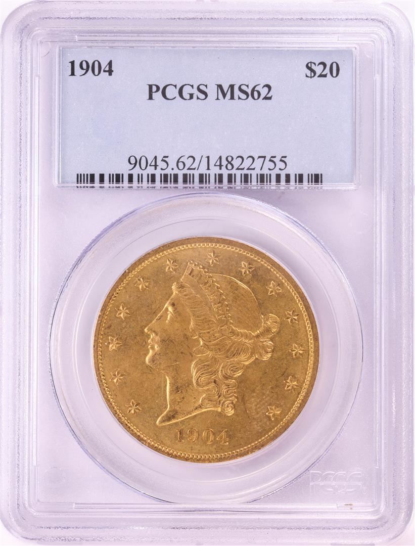 One 1904 $20 Liberty Head Double Eagle Gold Coin PCGS MS62. PCGS Graded.