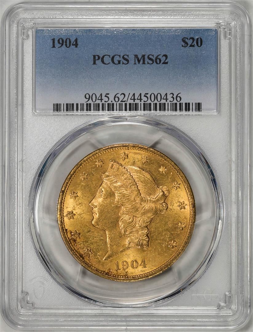 One 1904 $20 Liberty Head Double Eagle Gold Coin PCGS MS62. PCGS Graded.