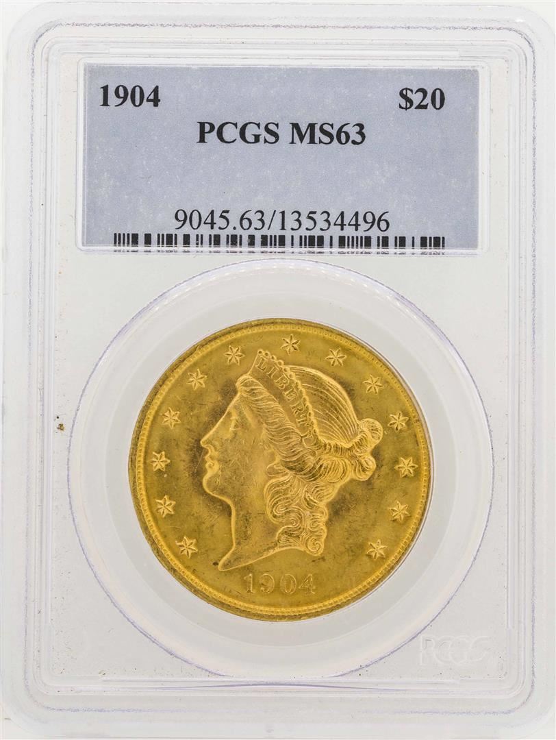 One 1904 $20 Liberty Head Double Eagle Gold Coin PCGS MS63. PCGS Graded.