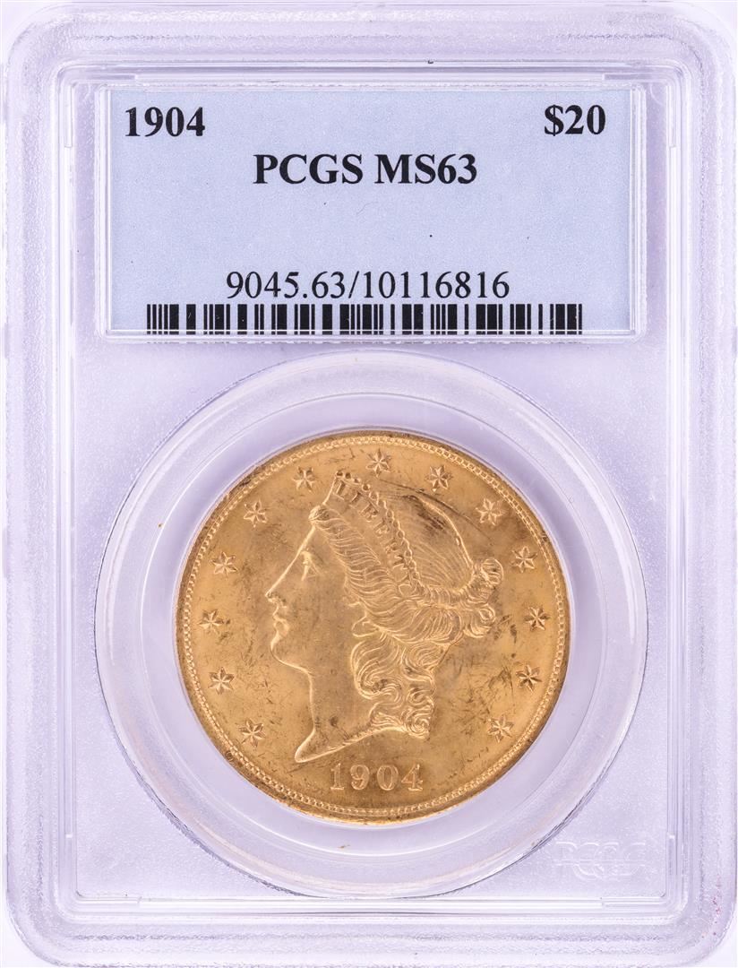 One 1904 $20 Liberty Head Double Eagle Gold Coin PCGS MS63. PCGS Graded.