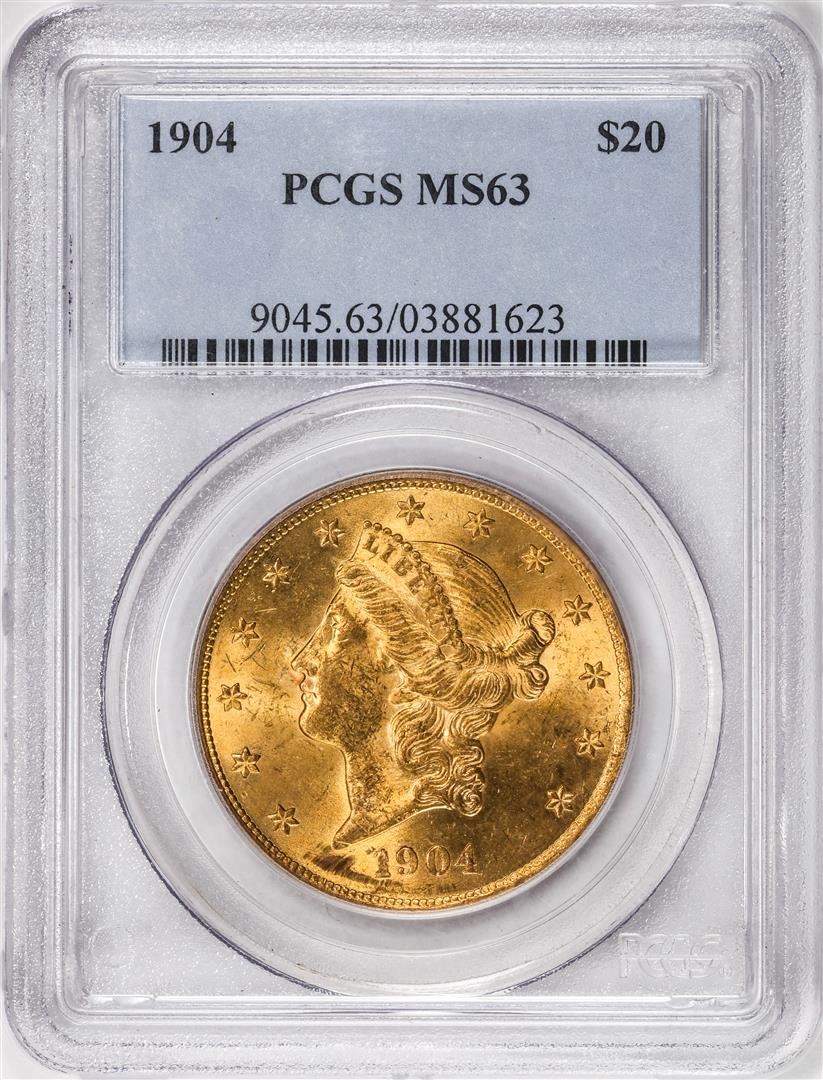 One 1904 $20 Liberty Head Double Eagle Gold Coin PCGS MS63. PCGS Graded.