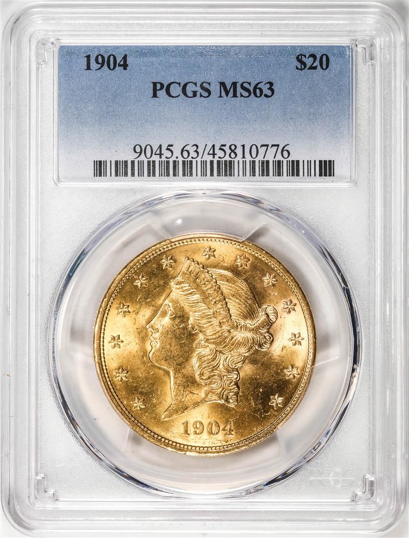 One 1904 $20 Liberty Head Double Eagle Gold Coin PCGS MS63. PCGS Graded.