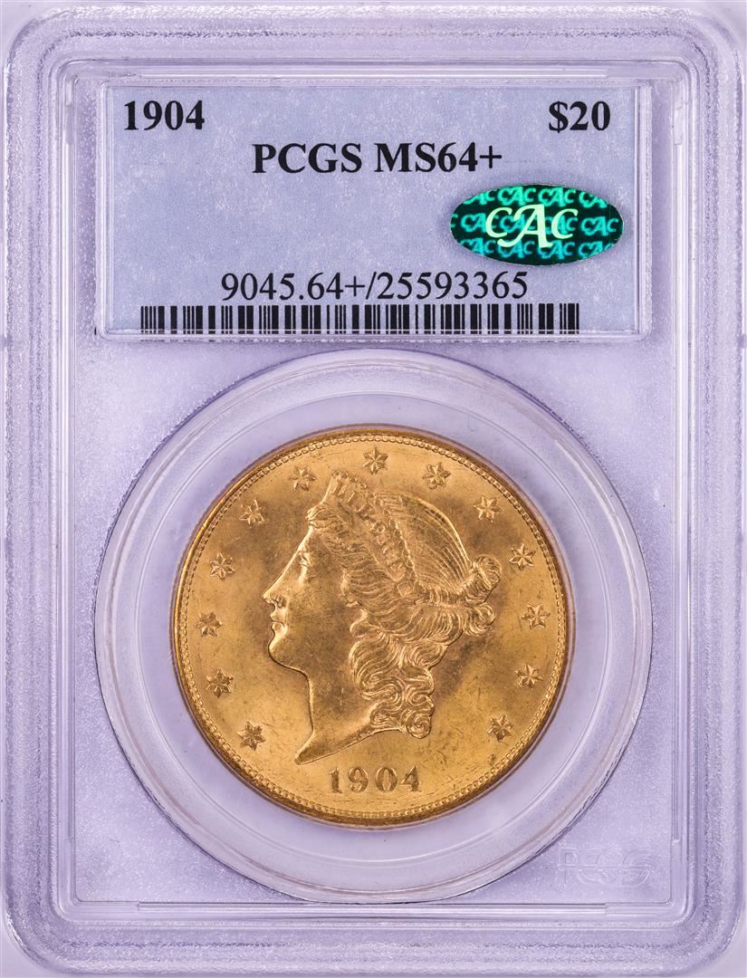 One 1904 $20 Liberty Head Double Eagle Gold Coin PCGS MS64+ CAC. PCGS Graded.
