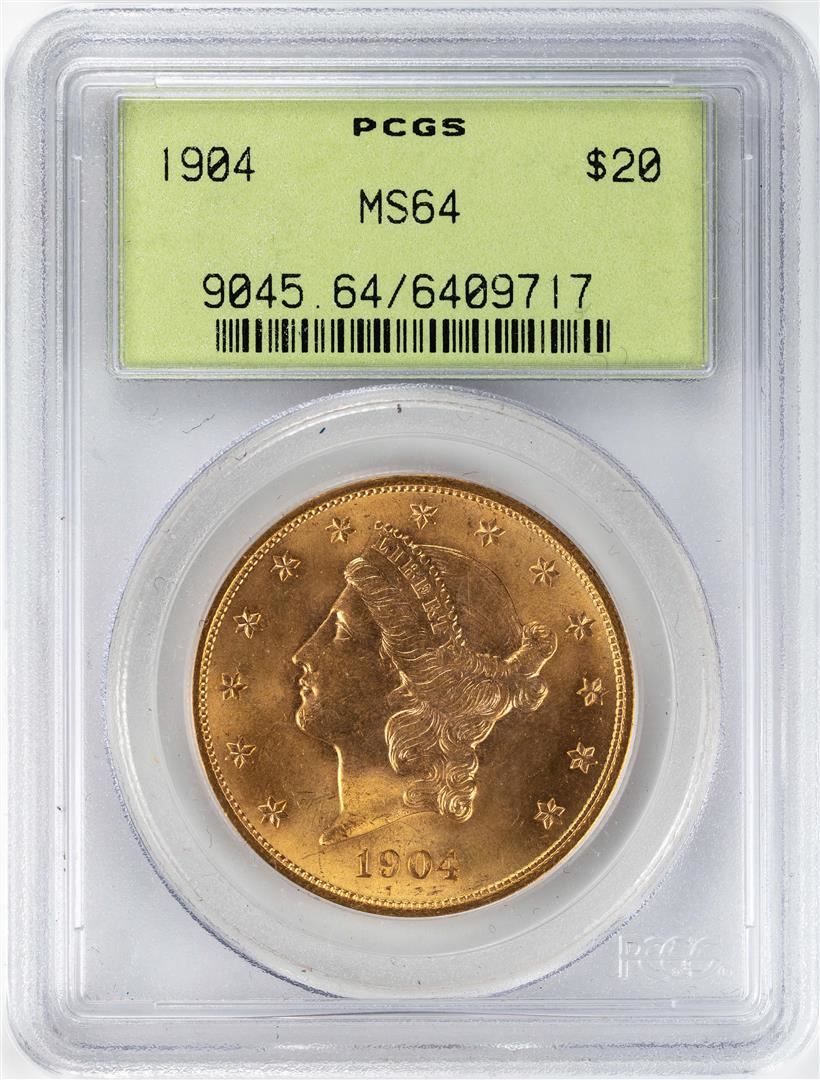 One 1904 $20 Liberty Head Double Eagle Gold Coin PCGS MS64 OGH. PCGS Graded.