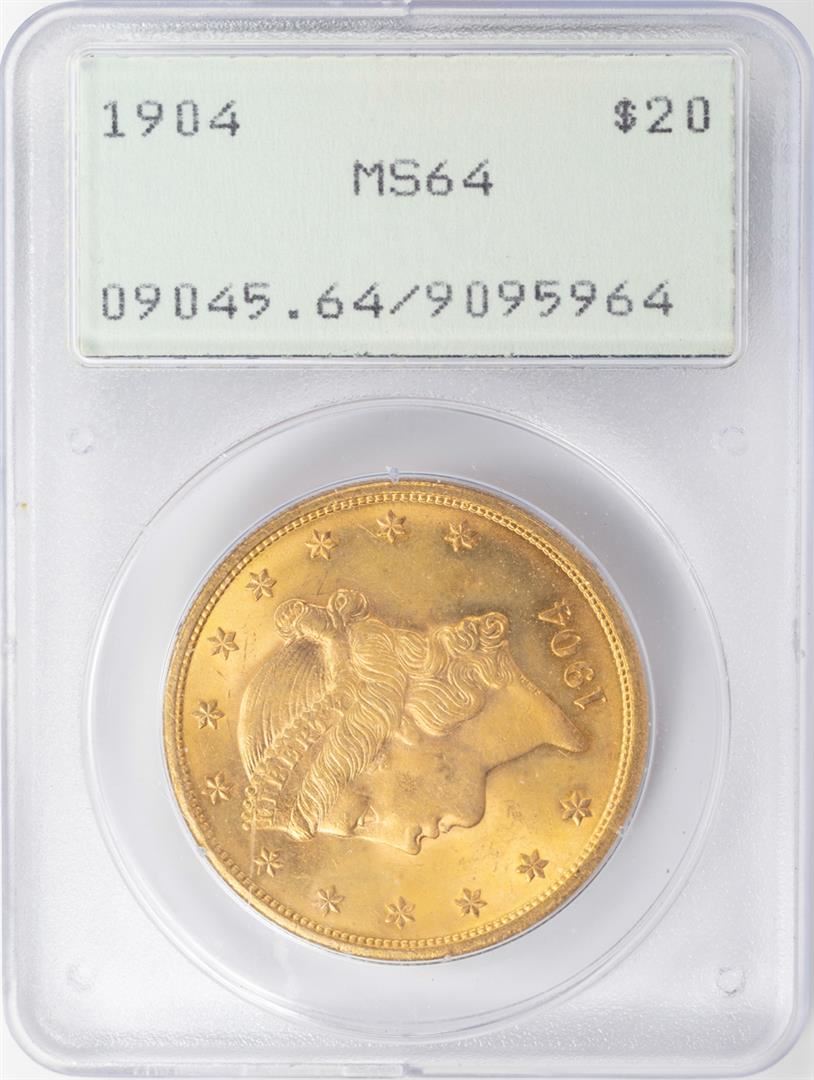 One 1904 $20 Liberty Head Double Eagle Gold Coin PCGS MS64 Old Green Rattler. PCGS Graded.