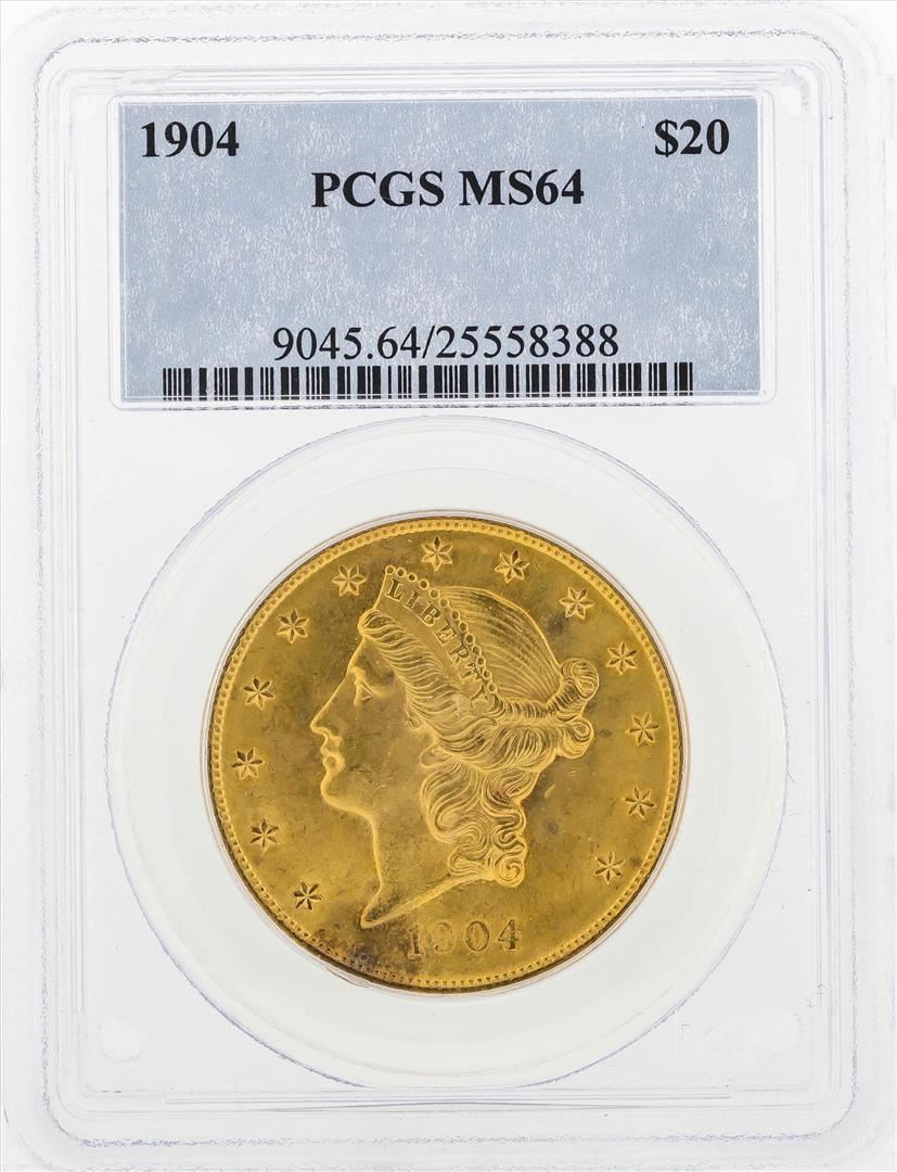 One 1904 $20 Liberty Head Double Eagle Gold Coin PCGS MS64. PCGS Graded.