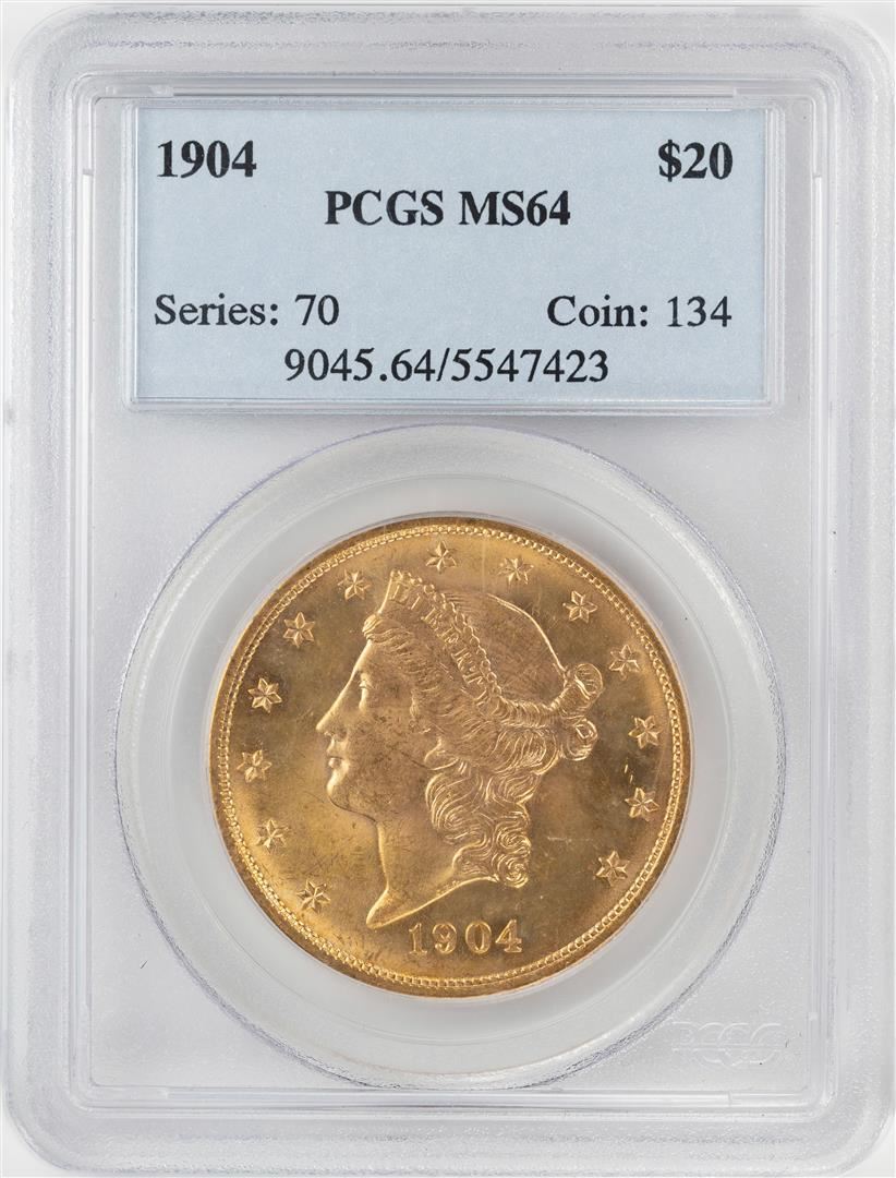 One 1904 $20 Liberty Head Double Eagle Gold Coin PCGS MS64. PCGS Graded.