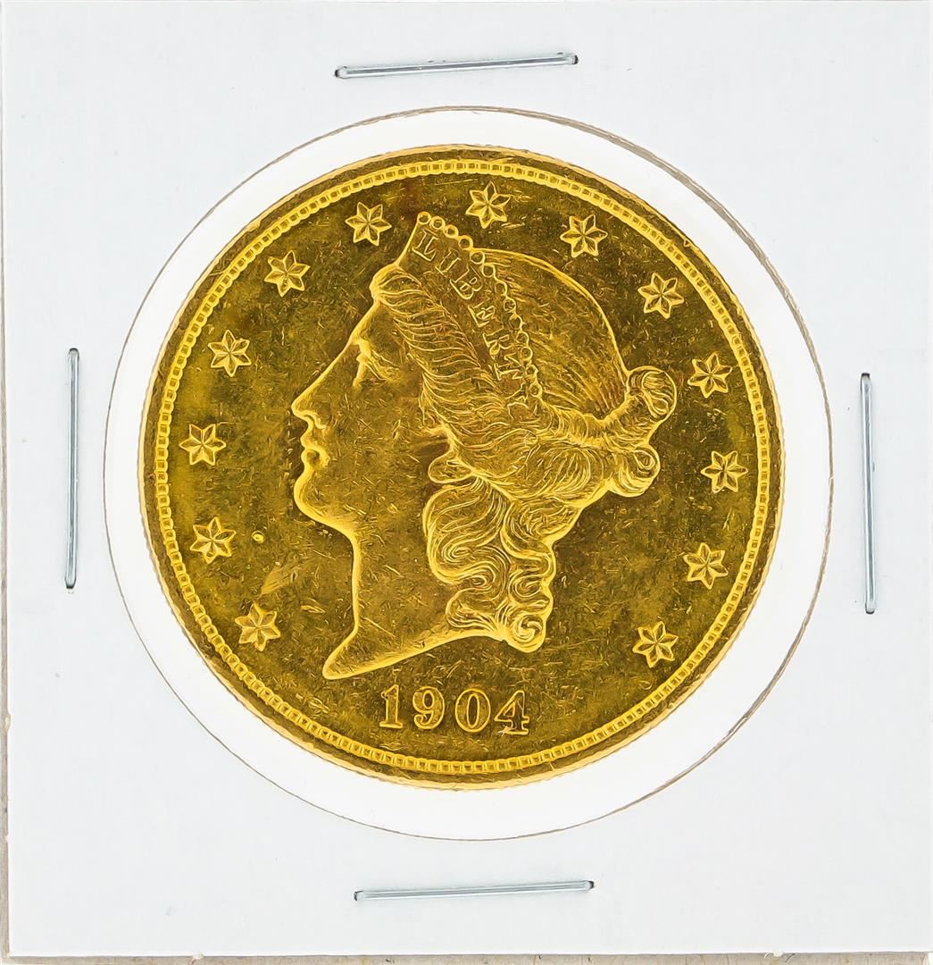 One 1904 $20 Liberty Head Double Eagle Gold Coin.