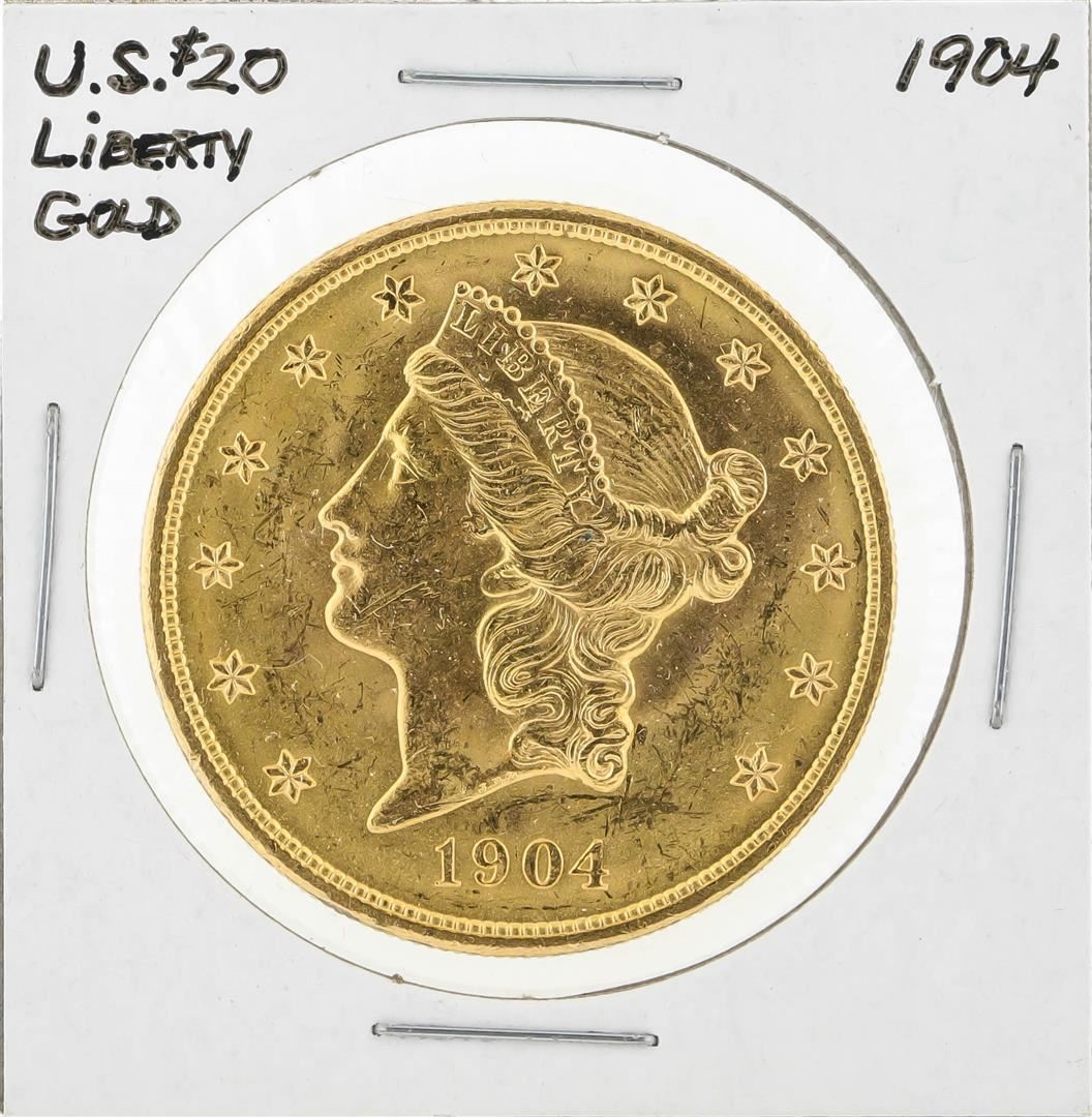 One 1904 $20 Liberty Head Double Eagle Gold Coin.