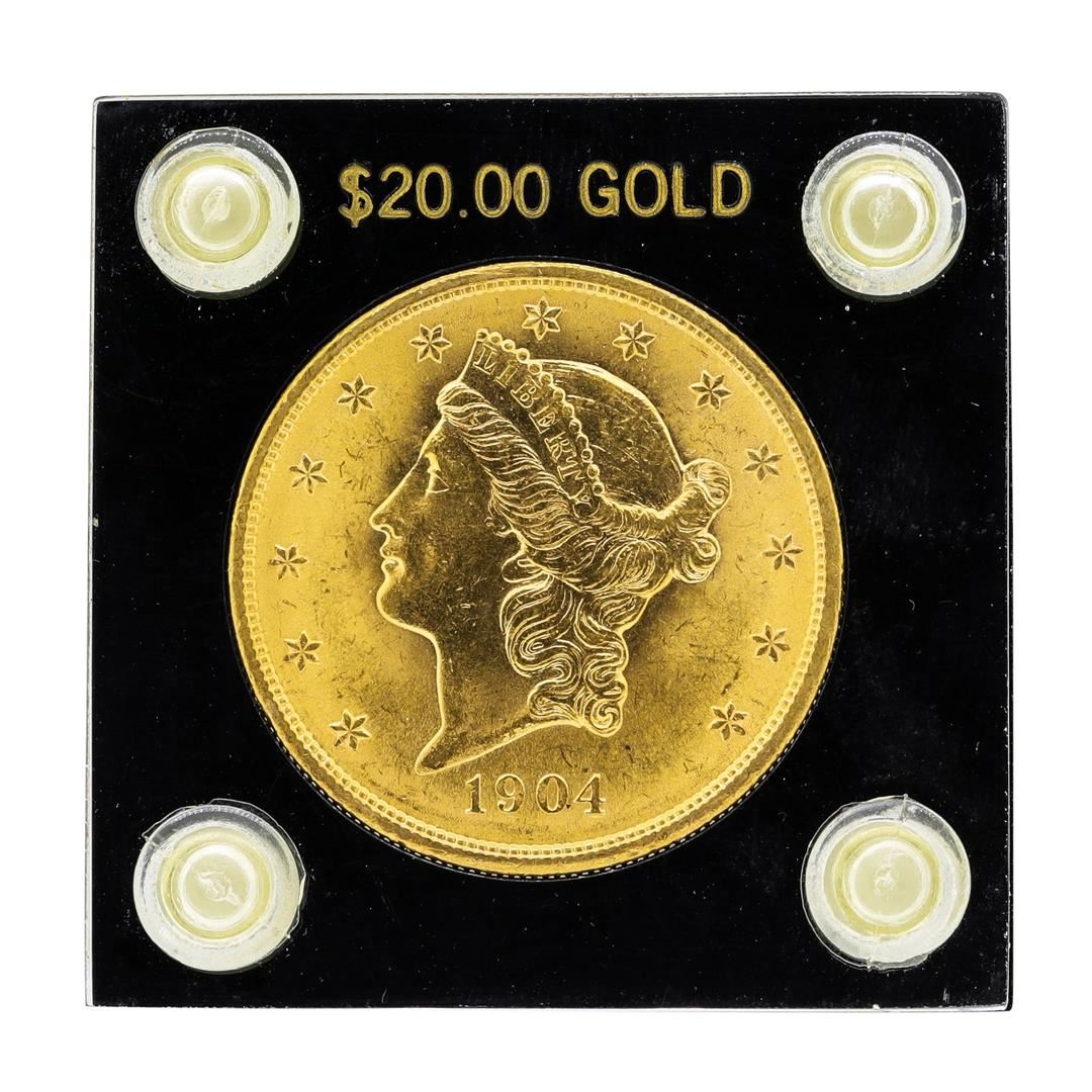 One 1904 $20 Liberty Head Double Eagle Gold Coin.