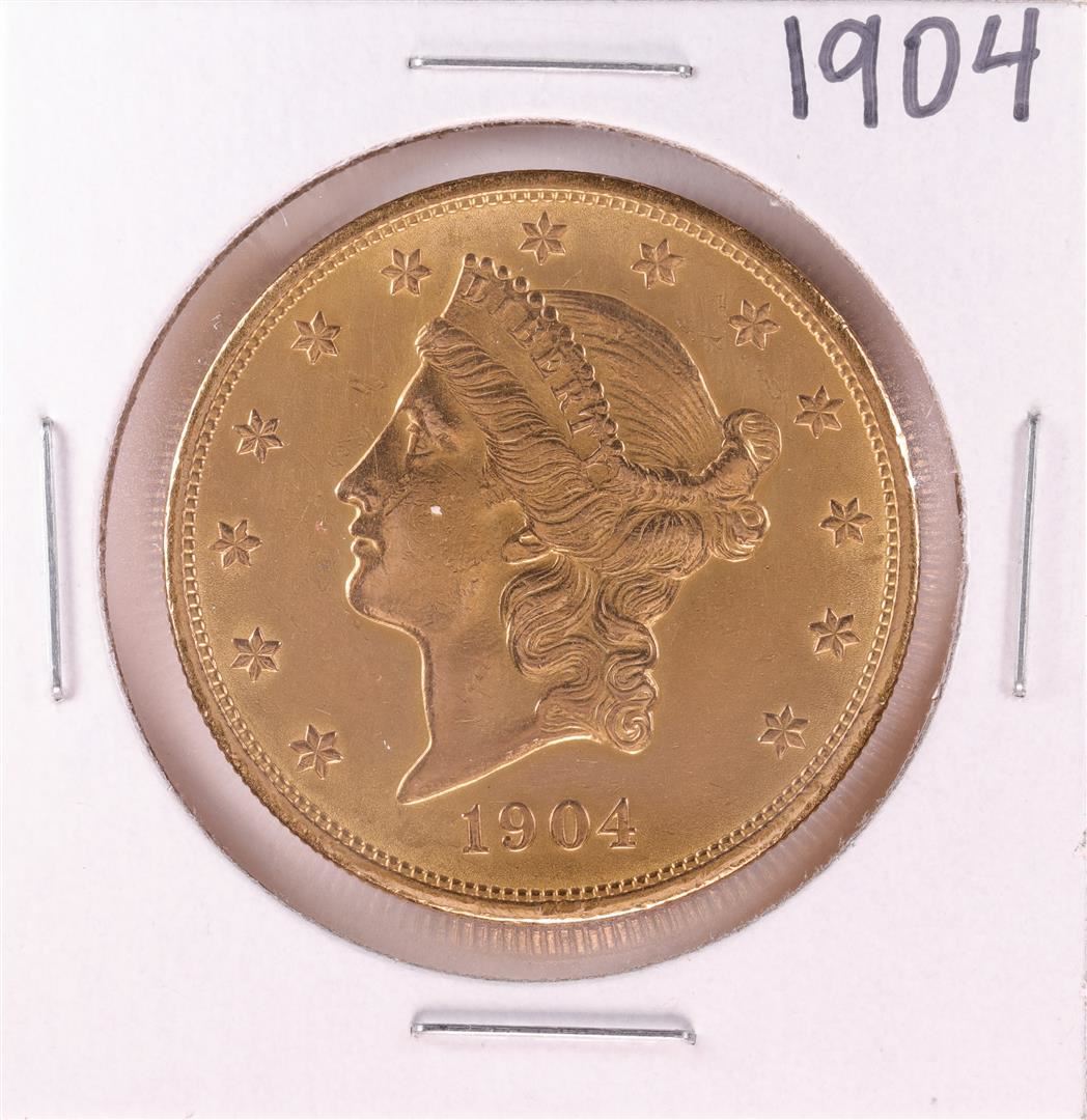 One 1904 $20 Liberty Head Double Eagle Gold Coin.