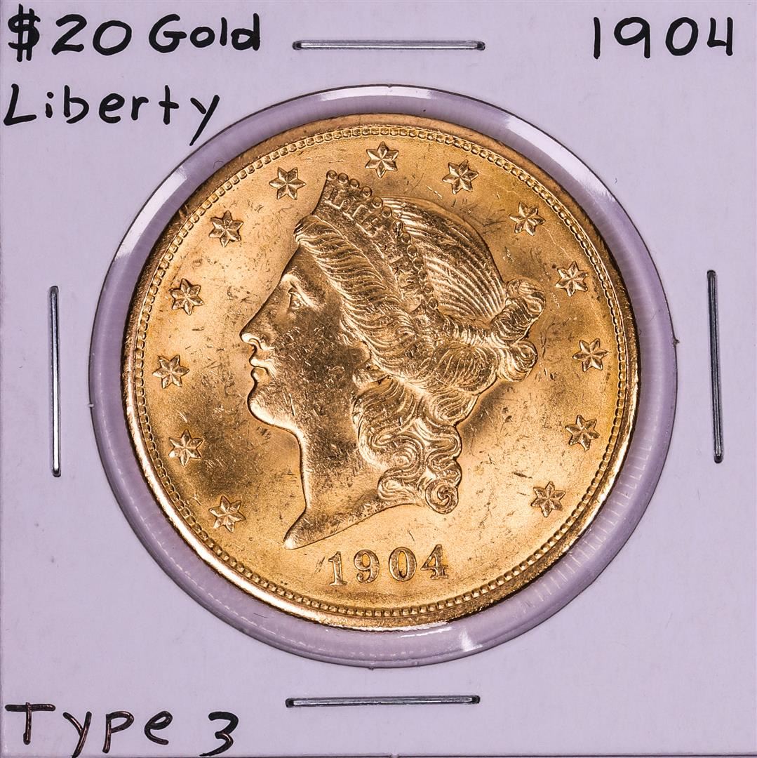 One 1904 $20 Liberty Head Double Eagle Gold Coin.