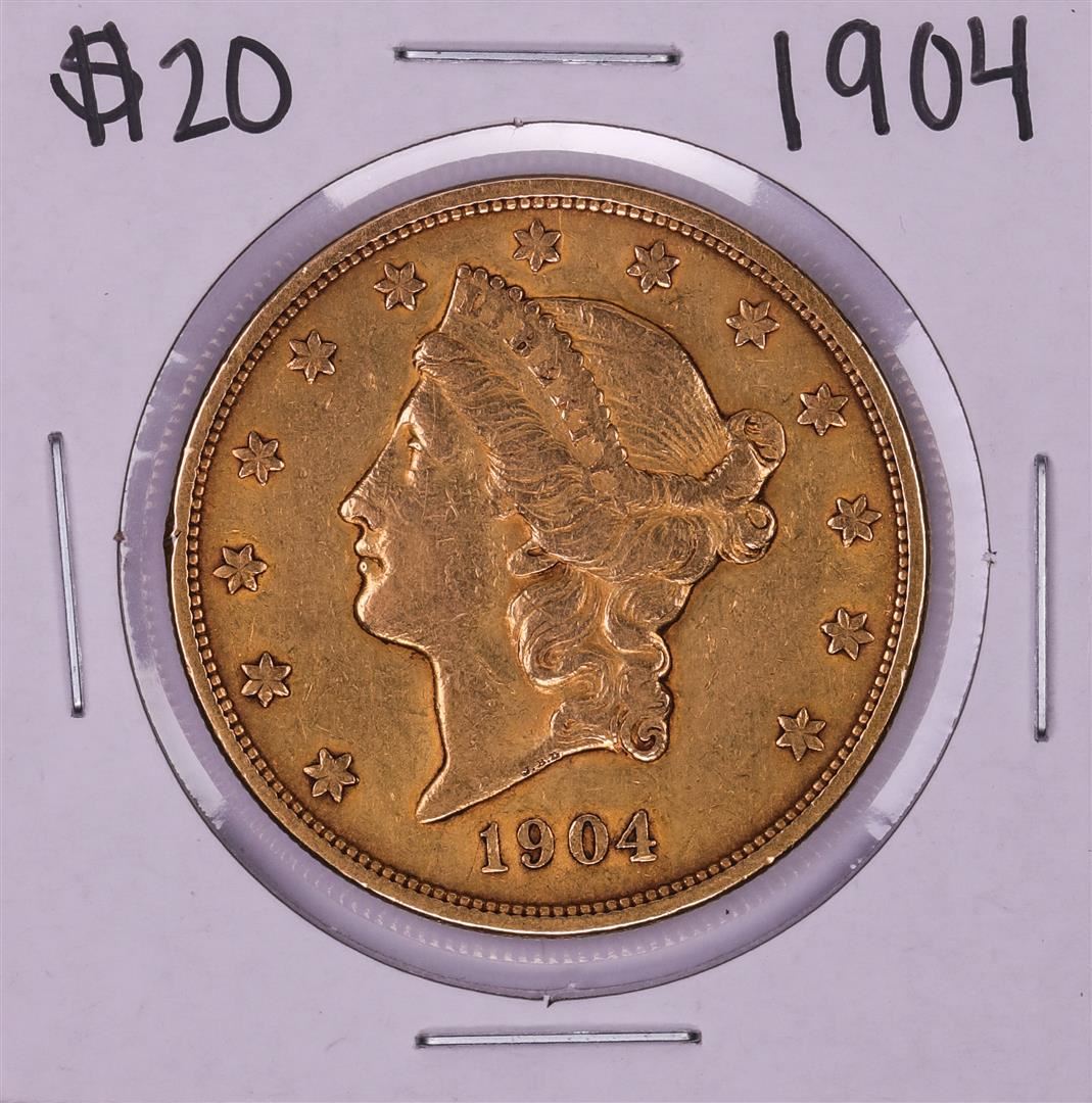 One 1904 $20 Liberty Head Double Eagle Gold Coin.