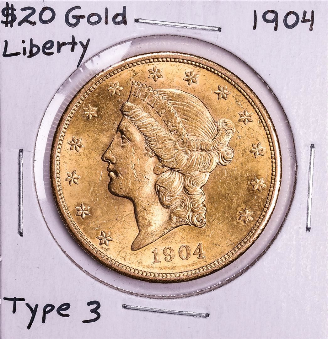 One 1904 $20 Liberty Head Double Eagle Gold Coin.
