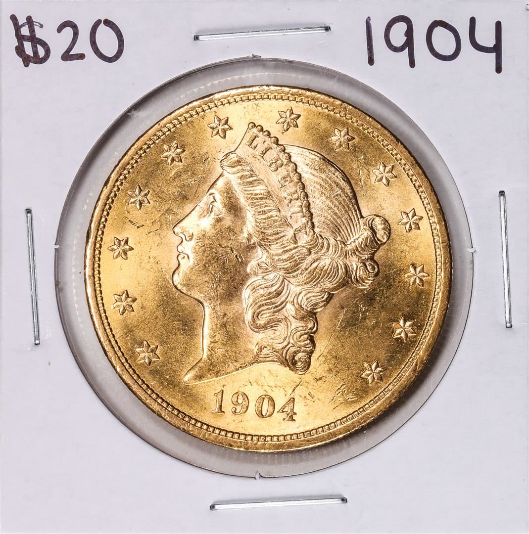 One 1904 $20 Liberty Head Double Eagle Gold Coin.