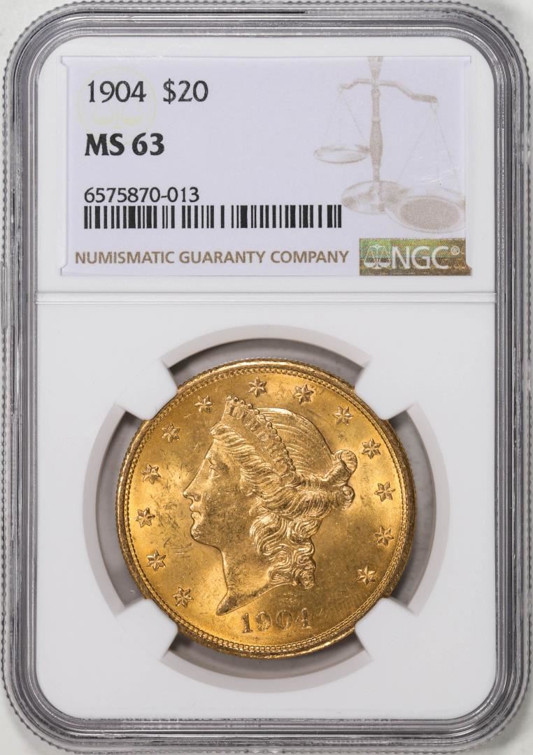 One 1904 $20 Liberty Head Eagle Gold Coin NGC MS63. NGC Certified.