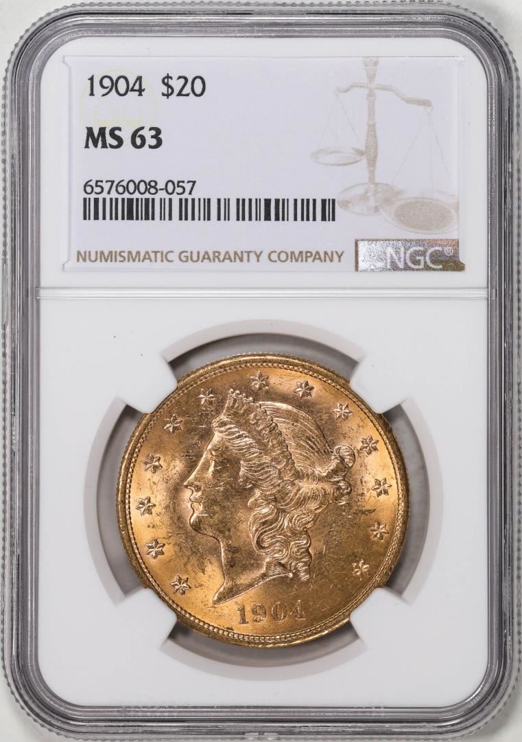 One 1904 $20 Liberty Head Eagle Gold Coin NGC MS63. NGC Certified.