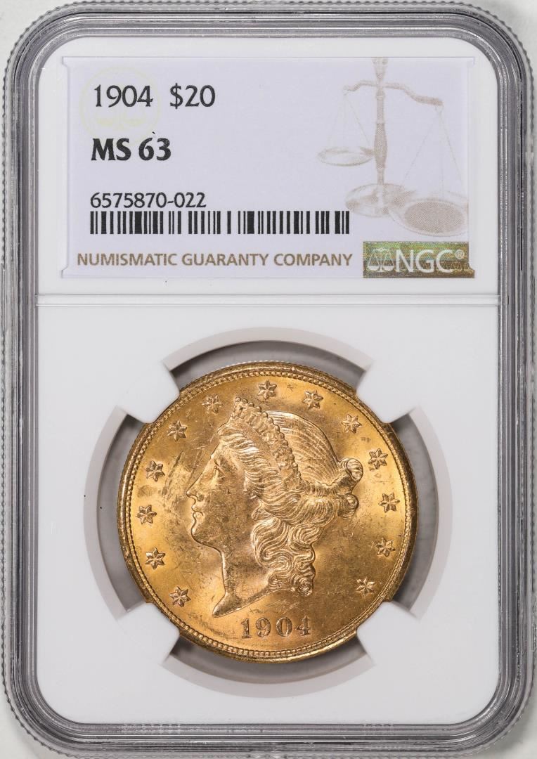 One 1904 $20 Liberty Head Eagle Gold Coin NGC MS63. NGC Certified.