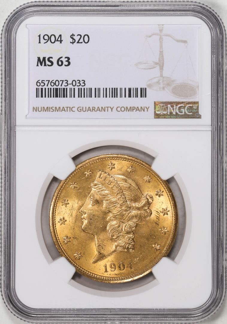 One 1904 $20 Liberty Head Eagle Gold Coin NGC MS63. NGC Certified.