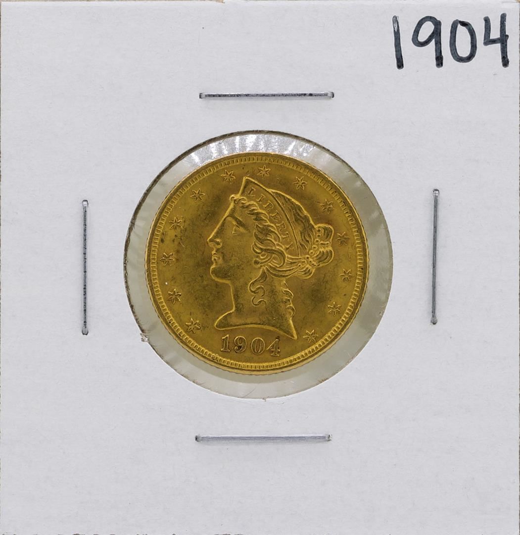 One 1904 $5 Liberty Head Half Eagle Gold Coin.