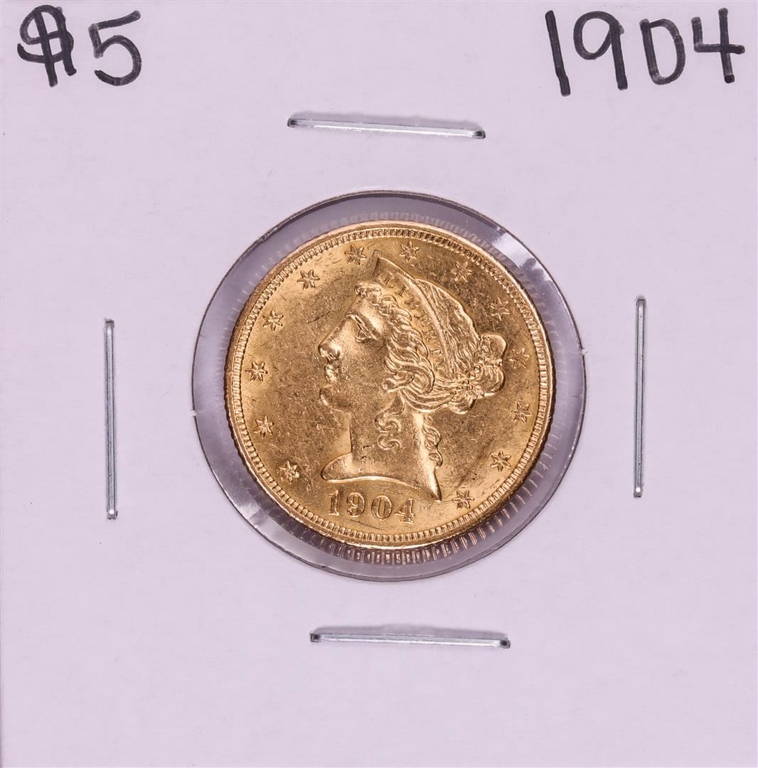 One 1904 $5 Liberty Head Half Eagle Gold Coin.