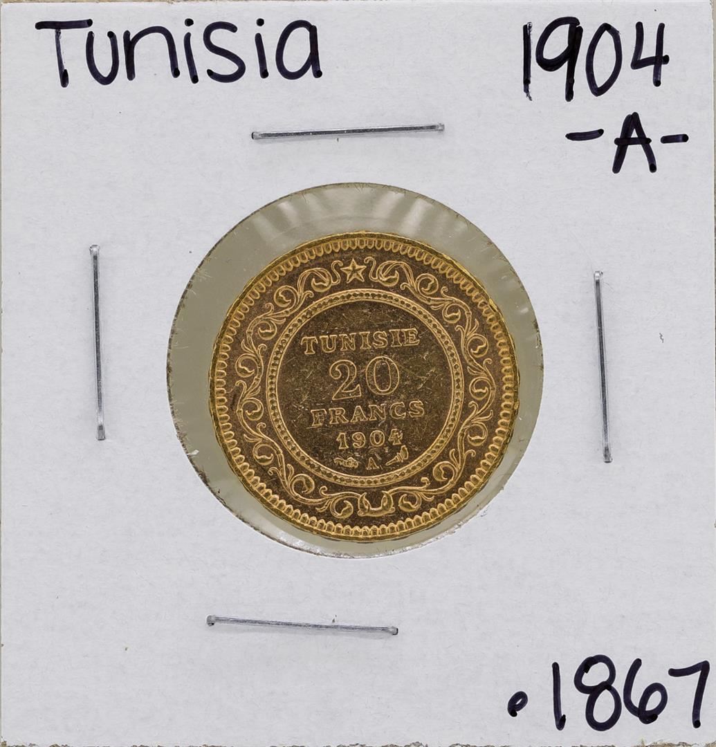 One 1904-A Tunisia 20 Francs Gold Coin.
