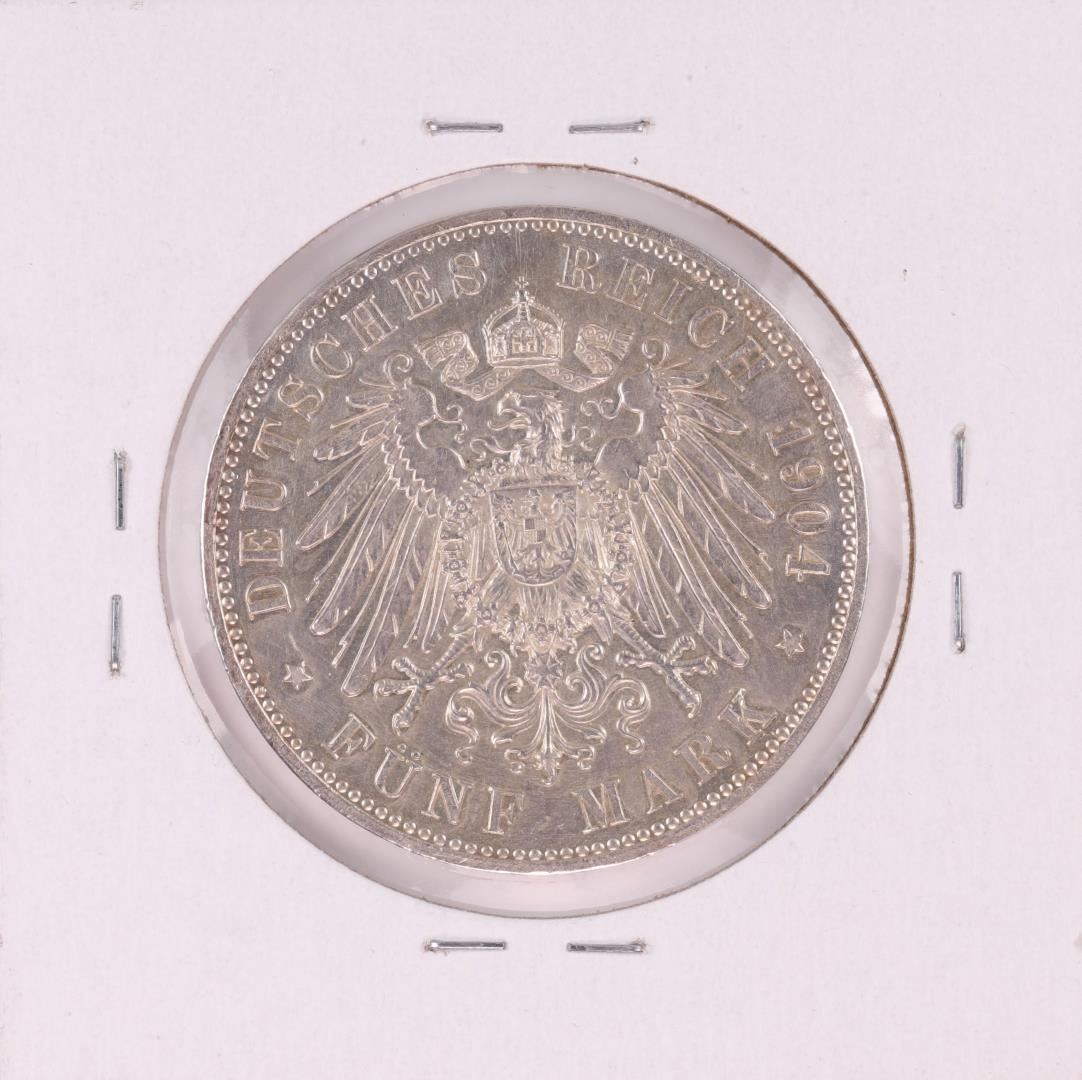 One 1904 Germany Macklenburg Schwerin 5 Mark Silver Coin.