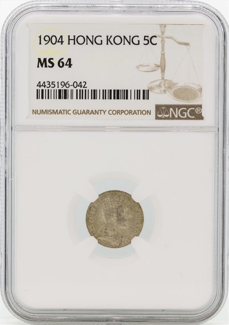 One 1904 Hong Kong 5 Cents Silver Coin NGC MS64. NGC Certified.