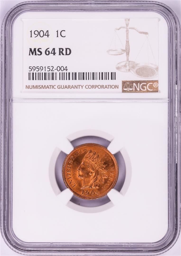One 1904 Indian Head Cent Coin NGC MS64RD. NGC Certified.