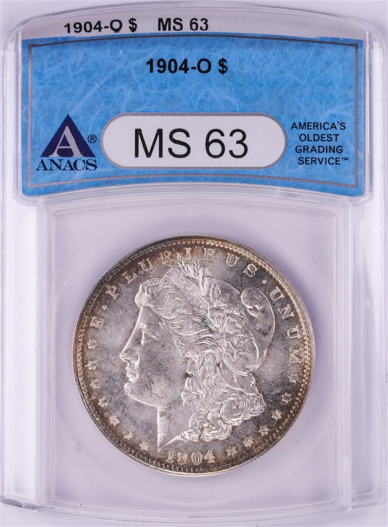 One 1904-O $1 Morgan Silver Dollar Coin ANACS MS63. ANACS Certified.