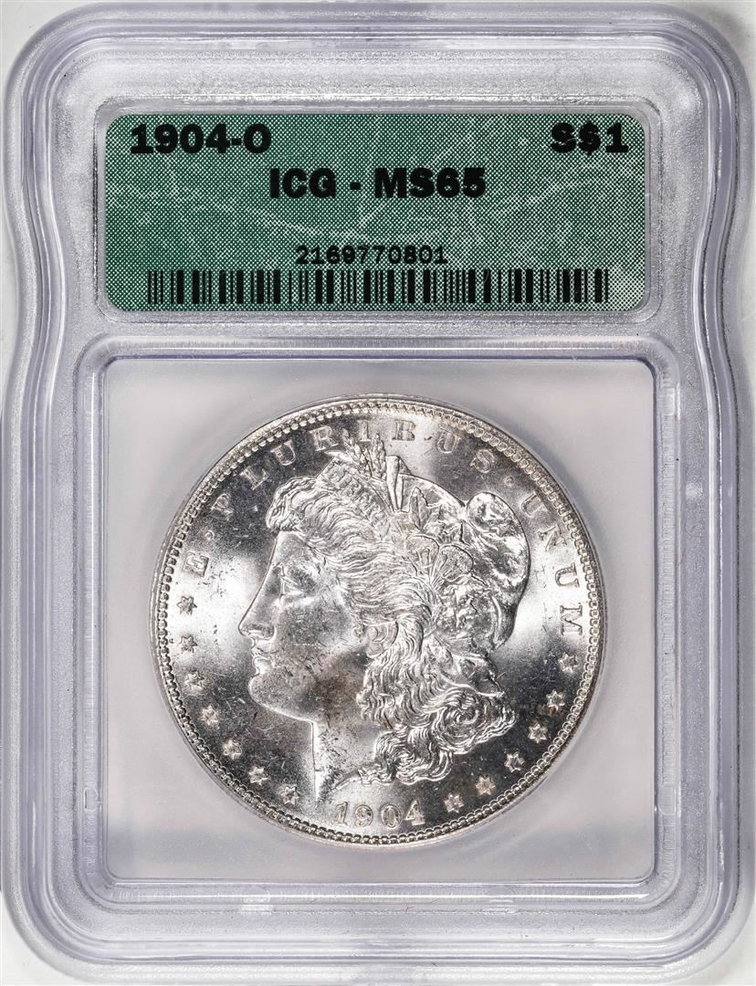One 1904-O $1 Morgan Silver Dollar Coin ICG MS65. ICG Certified.