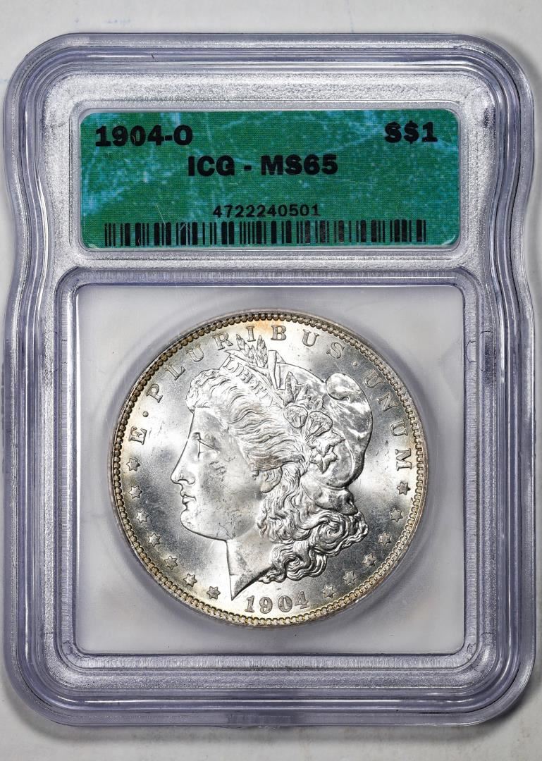 One 1904-O $1 Morgan Silver Dollar Coin ICG MS65. ICG Certified.