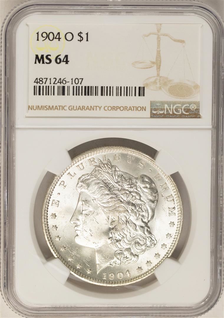 One 1904-O $1 Morgan Silver Dollar Coin NGC MS64. NGC Certified.