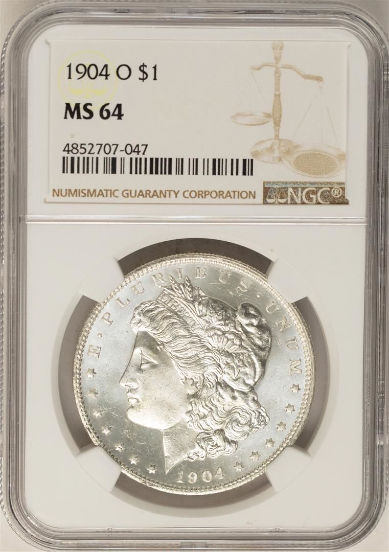 One 1904-O $1 Morgan Silver Dollar Coin NGC MS64. NGC Certified.