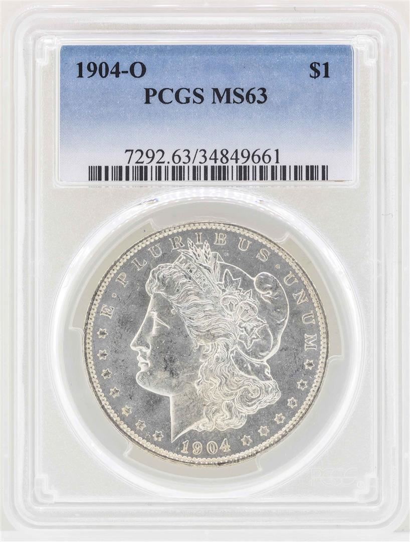 One 1904-O $1 Morgan Silver Dollar Coin PCGS MS63. PCGS Graded.